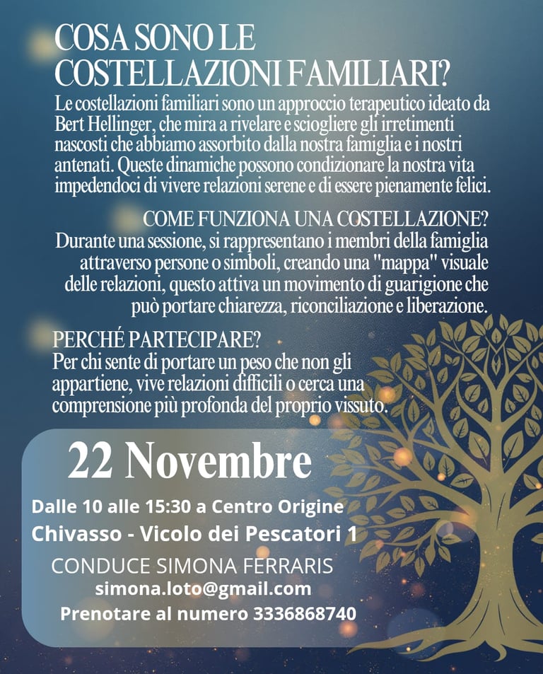 Le costellazioni familiari sono uno spazio sacro per vedere queste trame, per onorare ciò che è stato e lasciare finalmente andare ciò che non ci appartiene.